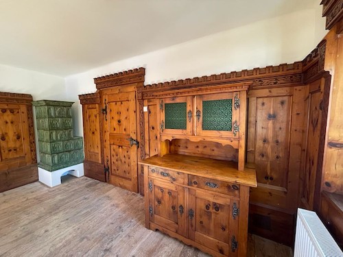 Im ersten Obergeschoß befindet sich eine zumindest über 400 Jahre alte Zirbenstube mit Kachelofen, die demontiert, aufwendig von Fachleuten restauriert und wieder originalgetreu eingebaut wurden. Sogar der vor der Kernsanierung noch bestandene Holzriemenboden der Stube wurde diesem aufwendigen Prozess unterzogen. Â